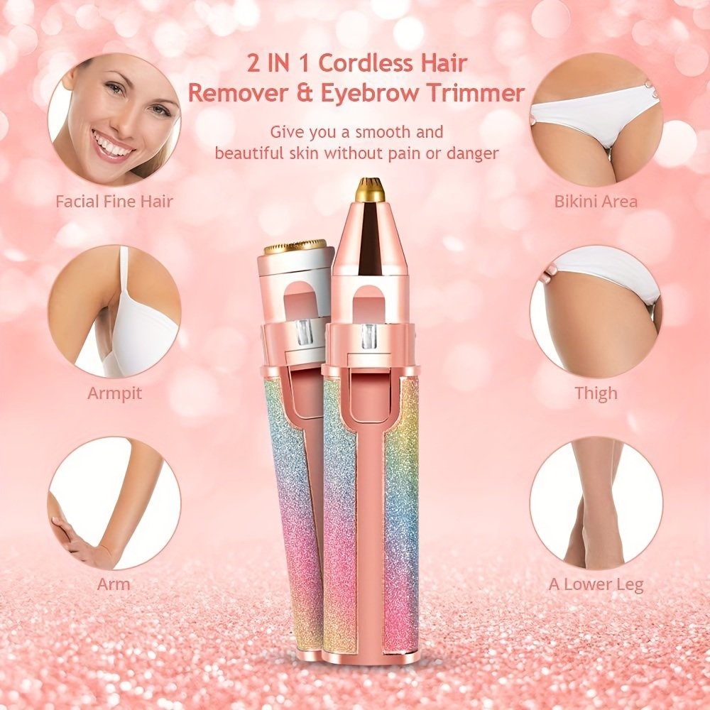 Home > 2-in-1 Eyebrow Razor for Women - Painless and Precision Facial Hair Removal with USB Rechargeable Trimmer and Built-in LED Light - Perfect for Nose, L