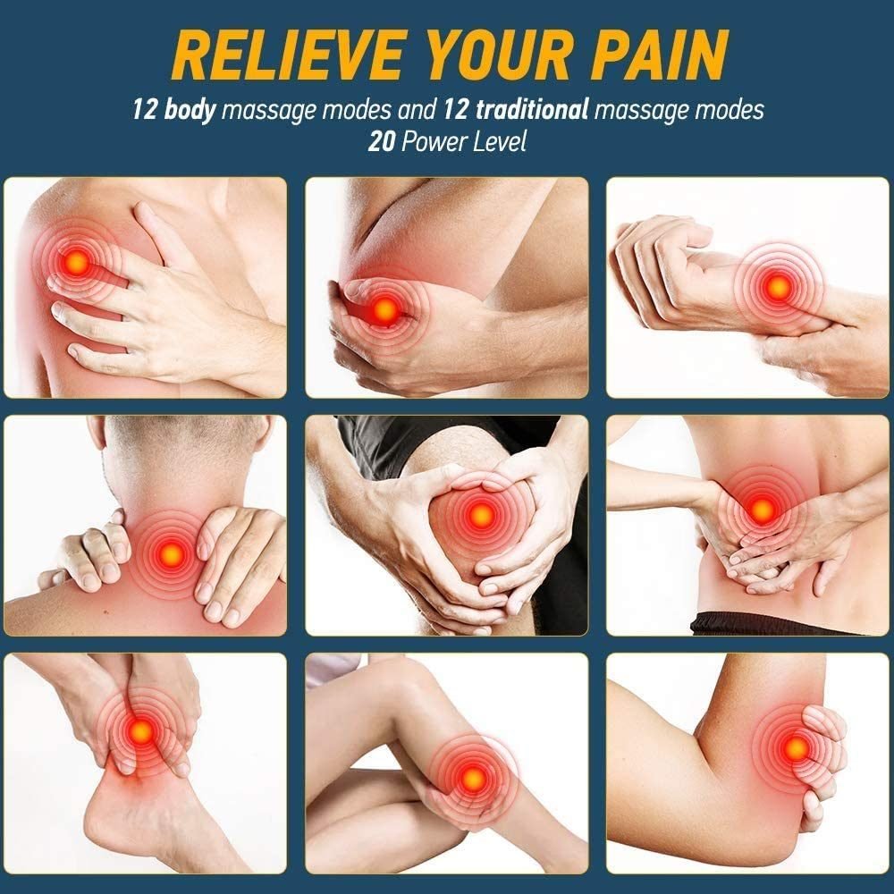 12 Body Massage Modes & 12 Traditional Massage Modes. Approved for OTC home use effective pain relief therapy device.