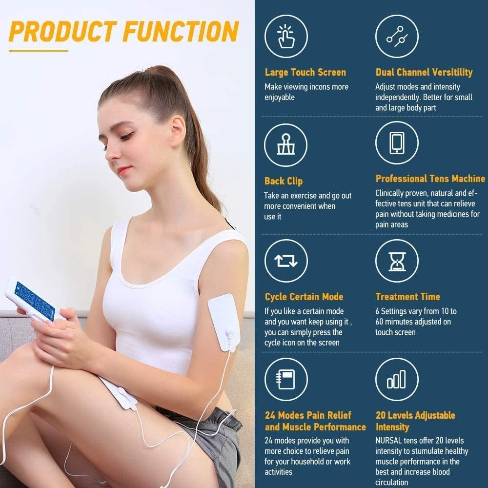 NURSAL Dual Channel Touchscreen TENS Unit Muscle Stimulator Machine with 24 Modes Rechargeable Massager for Pain Relief Therapy, 16 Electrodes Pads an NURSAL Dual Channel Touchscreen TENS Unit Muscle Stimulator Machine with 24 Modes Rechargeable Massager for Pain Relief Therapy, 16 Electrodes Pads an NURSAL Dual Channel Touchscreen TENS Unit Muscle Stimulator Machine with 24 Modes Rechargeable Massager for Pain Relief Therapy, 16 Electrodes Pads an NURSAL Dual Channel Touchscreen TENS Unit Muscle Stimulator Machine with 24 Modes Rechargeable Massager for Pain Relief Therapy, 16 Electrodes Pads an NURSAL Dual Channel Touchscreen TENS Unit Muscle Stimulator Machine with 24 Modes Rechargeable Massager for Pain Relief Therapy, 16 Electrodes Pads an NURSAL Dual Channel Touchscreen TENS Unit Muscle Stimulator Machine with 24 Modes Rechargeable Massager for Pain Relief Therapy, 16 Electrodes Pads an NURSAL Dual Channel Touchscreen TENS Unit Muscle Stimulator Machine with 24 Modes Rechargeable Massager for Pain Relief Therapy, 16 Electrodes Pads an NURSAL Dual Channel Touchscreen TENS Unit Muscle Stimulator Machine with 24 Modes Rechargeable Massager for Pain Relief Therapy, 16 Electrodes Pads an NURSAL Dual Channel Touchscreen TENS Unit Muscle Stimulator Machine with 24 Modes Rechargeable Massager for Pain Relief Therapy, 16 Electrodes Pads an NURSAL Dual Channel Touchscreen TENS Unit Muscle Stimulator Machine with 24 Modes Rechargeable Massager for Pain Relief Therapy, 16 Electrodes Pads an