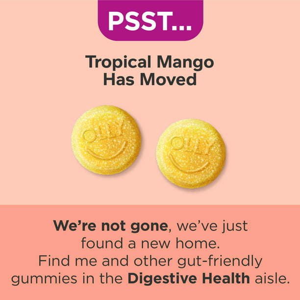 Tropical Mango has moved! You can now find me and other gut-friendly gummies in the Digestive Health aisle.