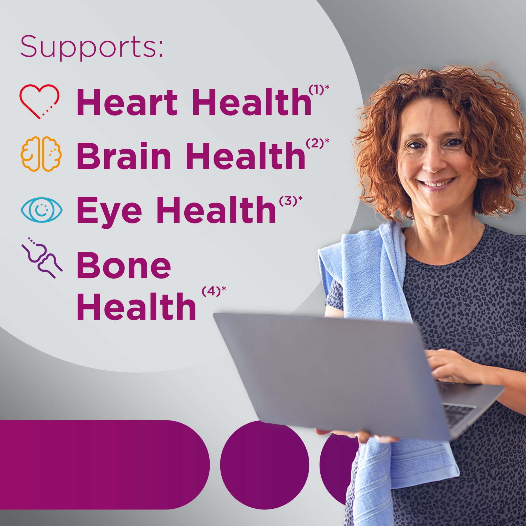 Specially formulated multivitamin/multimineral supplement that support the heart; brain; eyes and overall health of women age 50+ (1; 2)