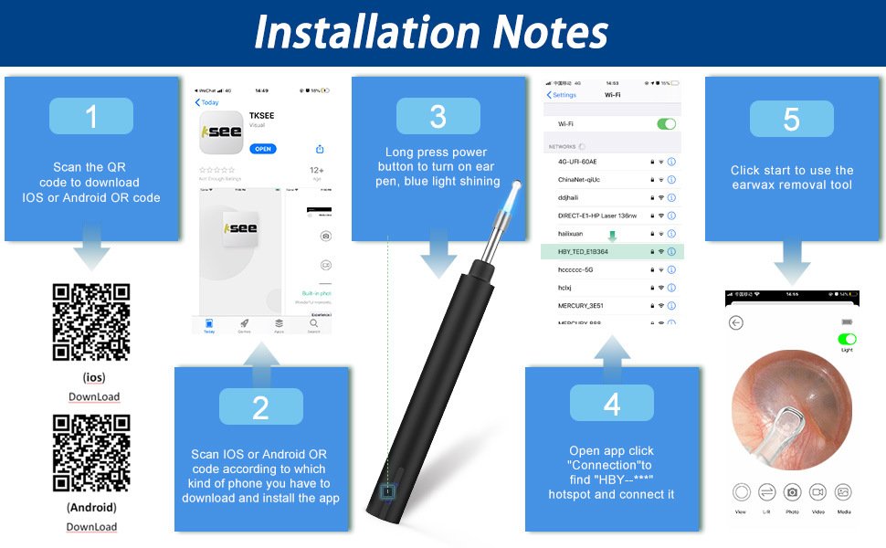 3.Smart APP and WiFi direct connection can provide clear images in any situation, helping you to clean your ears more easily and safely.