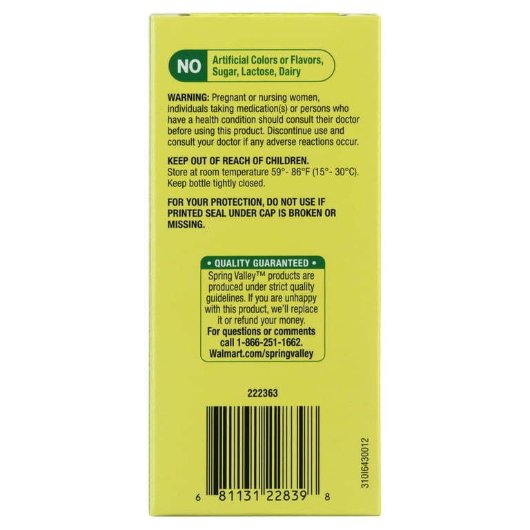 Ensure your optimal health by supporting your body with supplements, such as these Spring Valley Daily Detox & Cleansing Support Formula Dietary Supplements. This product contains a gentle, non-laxative formula that's designed to help in the natural detoxification process. This bottle of 60 vegetarian dietary supplement capsules provides a nutraceutical detox blend and herbal detox blend that includes wholesome plant-based ingredients. It also offers a natural absorption blend for faster processing. Spring Valley Daily Detox & Cleansing Support Formula Dietary Supplements are suitable for daily consumption, needing two capsules per serving. Clean up your digestive system and recapture your health with Spring Valley Daily Detox & Cleansing Support Formula Dietary Supplements.