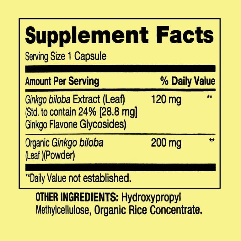 120 mg ginkgo biloba extract and 200 mg organic ginkgo biloba powder per capsule
