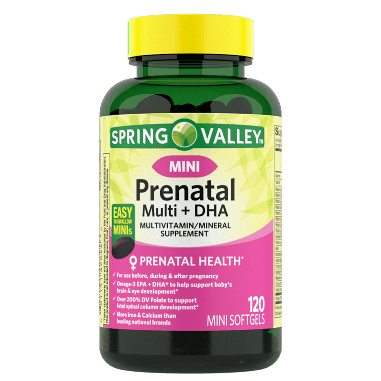 Spring Valley Mini Prenatal Multi + DHA Complete Multivitamin/Multimineral Supplement Mini Softgels, 120 Count Spring Valley Mini Prenatal Multi + DHA Complete Multivitamin/Multimineral Supplement Mini Softgels, 120 Count Spring Valley Mini Prenatal Multi + DHA Complete Multivitamin/Multimineral Supplement Mini Softgels, 120 Count