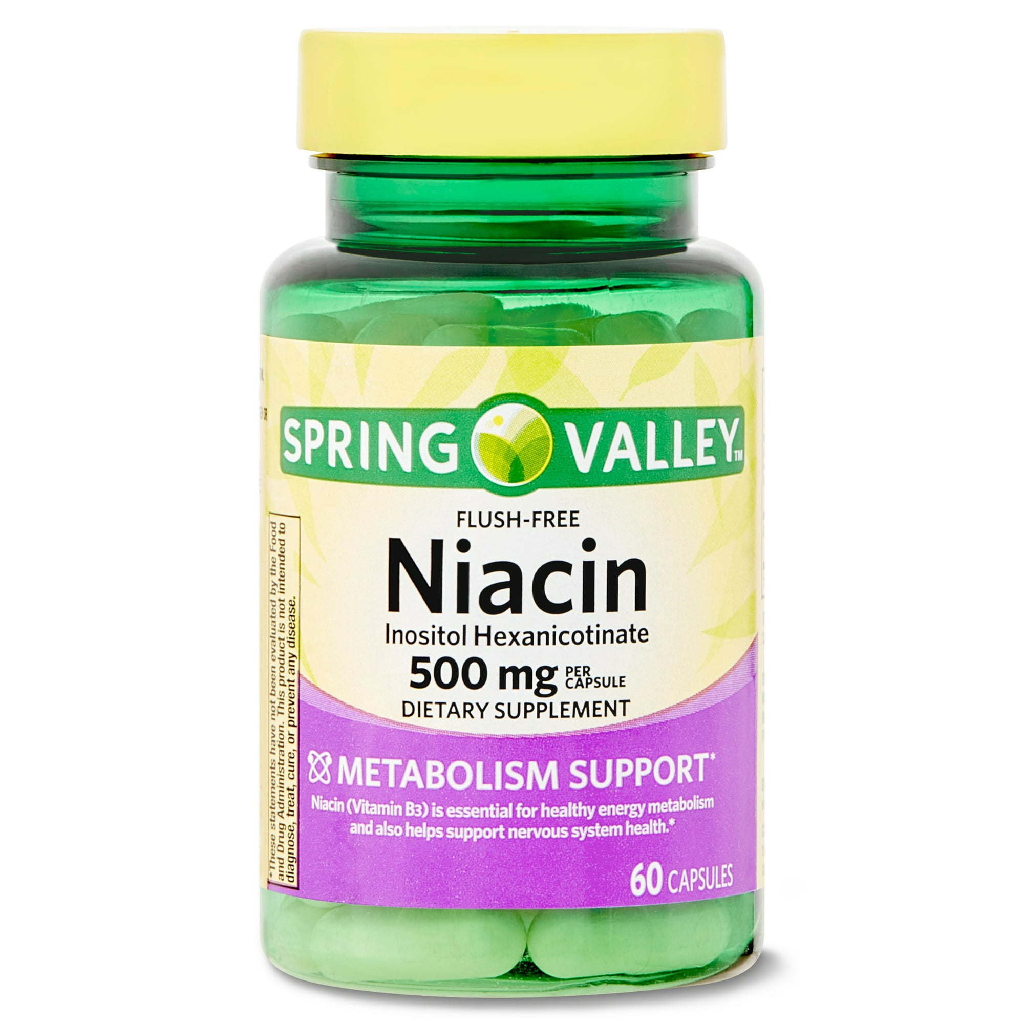 Spring Valley Niacin Inositol Hexanicotinate Metabolism Support Dietary Supplement Capsules are a dietary supplement formulated to promote metabolism support.* Niacin (vitamin B3) is essential for a healthy metabolism and also helps support nervous system health.* The suggested adult dosage is one capsule daily, preferably with a meal. These capsules contain no free from gluten, yeast, wheat, milk, lactose, sugar, preservatives, soy, artificial colors, and artificial flavors and each serving contains less than five milligrams of salt. You can rest assured that Spring Valley Niacin Inositol Hexanicotinate Metabolism Support Dietary Supplement Capsules are produced with strict quality guidelines and are backed by a quality guarantee.