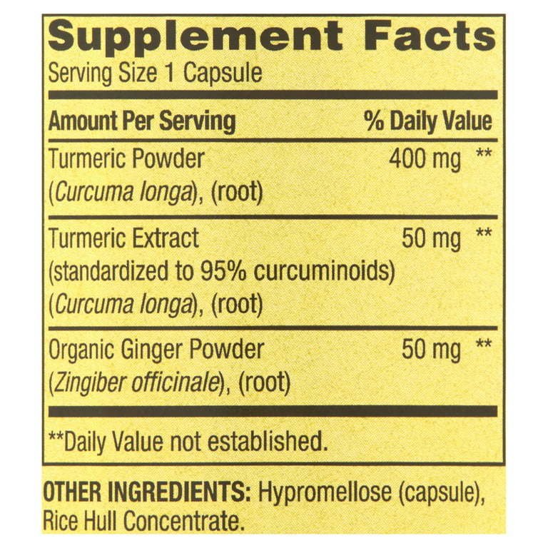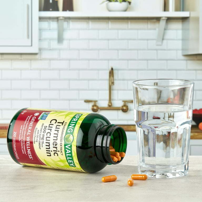 Spring Valley Turmeric Curcumin with Ginger Powder General Wellness Dietary Supplement Vegetarian Capsules, 500 mg, 250 Count Spring Valley Turmeric Curcumin with Ginger Powder General Wellness Dietary Supplement Vegetarian Capsules, 500 mg, 250 Count Spring Valley Turmeric Curcumin with Ginger Powder General Wellness Dietary Supplement Vegetarian Capsules, 500 mg, 250 Count